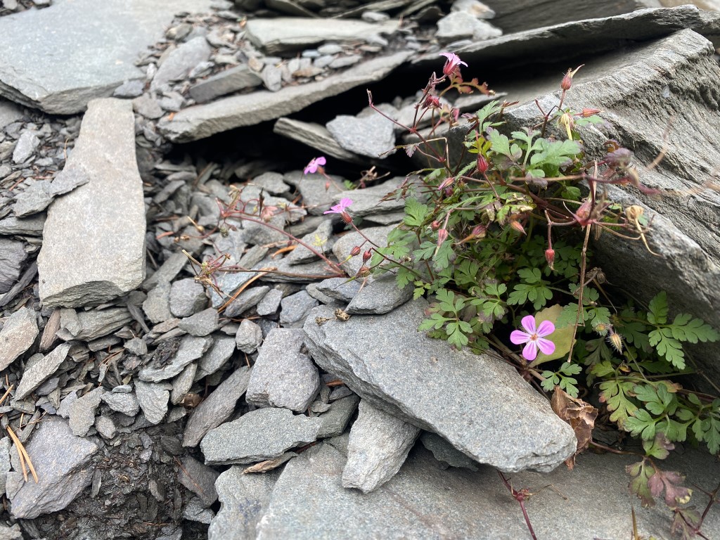 In November 2024 we found lots of Herb Robert growing on Castle Craggs, Borrowdale, Cumbria… It seemed to be the only flowering plant growing on the impressive slate heaps…