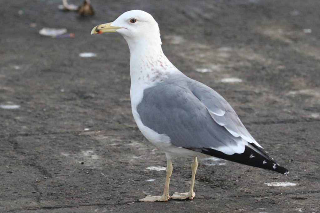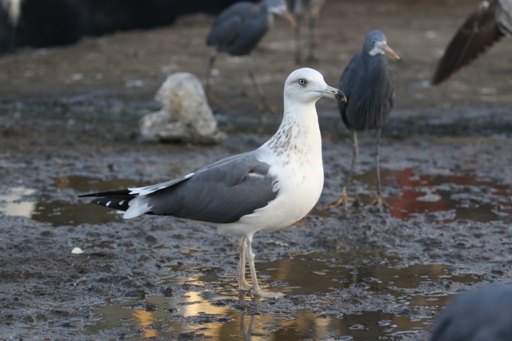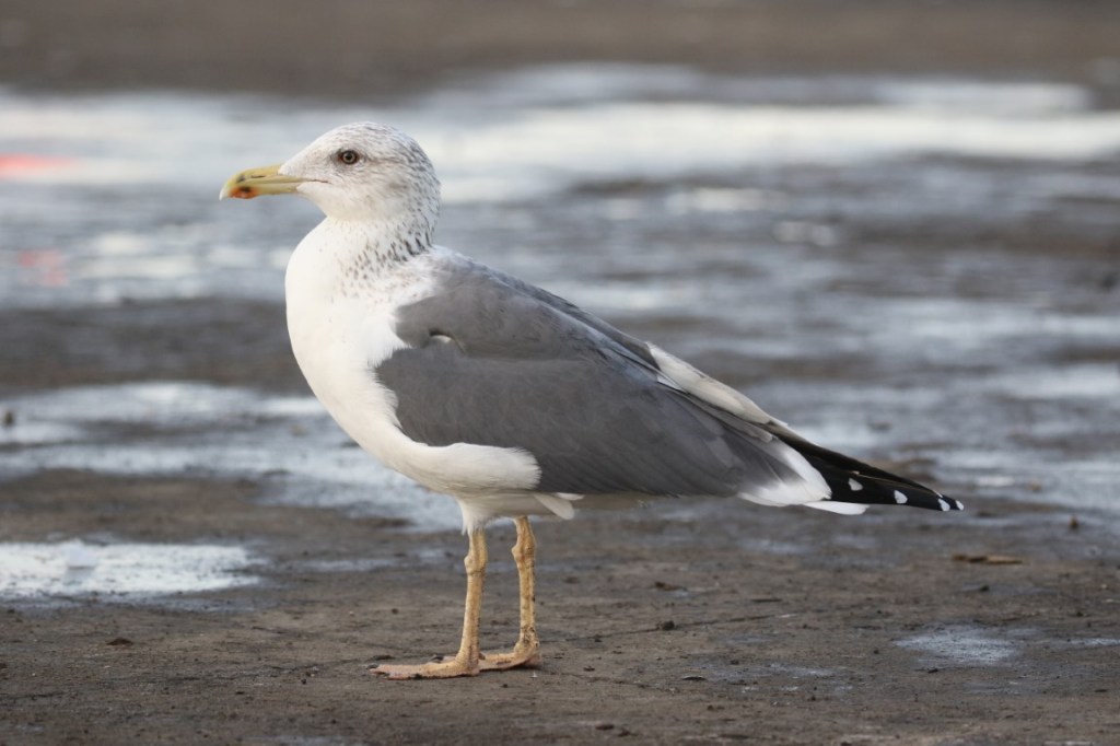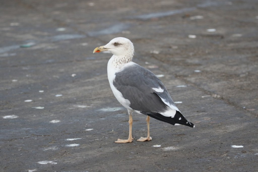 Adult Heuglin’s Gulls in breeding plumage have a dark gray mantle and wings, which can appear almost black in certain lights. This coloration is darker than that of the typical Lesser Black-backed Gull but lighter than the Great Black-backed Gull. The head and underparts are pure white, and the bill is yellow with a red gonys spot on the lower mandible. The legs are yellow, a key feature that helps distinguish it from the Lesser Black-backed Gull, which often has pinkish or yellowish legs. The eyes are pale yellow, surrounded by a red orbital ring.
