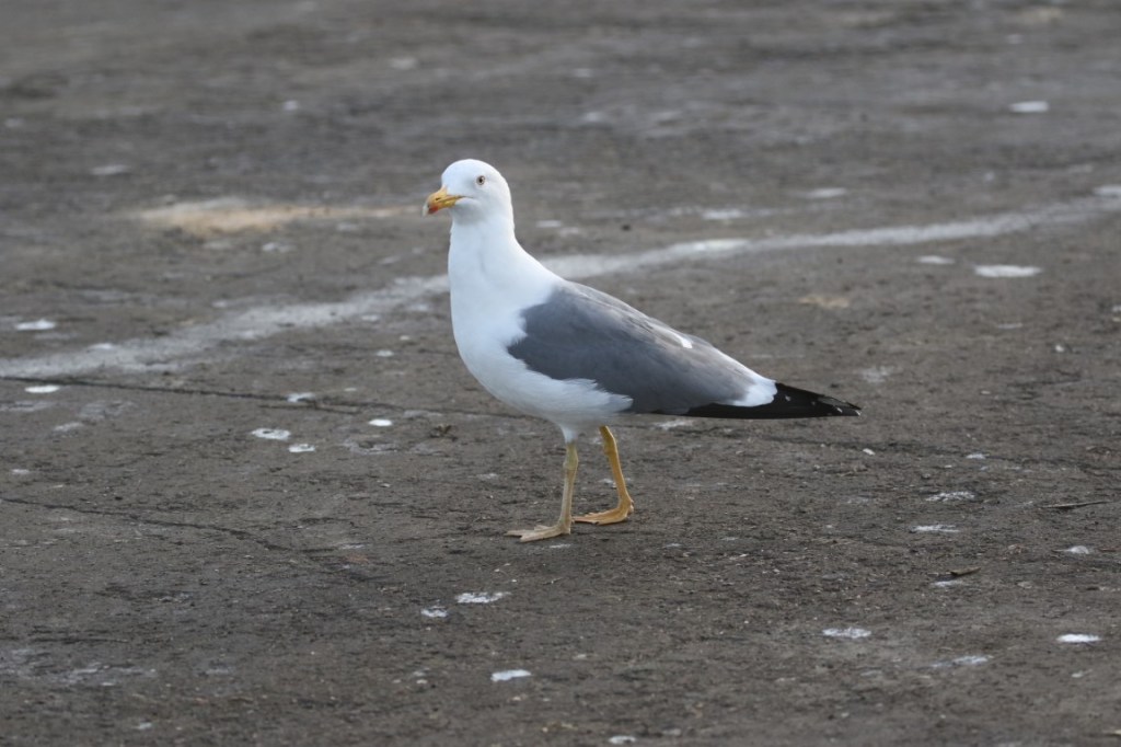 The Steppe Gull is a medium-sized gull, slightly smaller than the Herring Gull but larger than the Black-headed Gull. It has a slender, elongated body with long wings and legs, giving it a graceful appearance in flight.