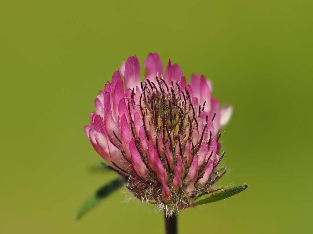 Red clover, Trifolium pratense, is a widespread wildflower and member of the legume family, commonly found across the UK and other temperate regions of the Northern Hemisphere. It is easily recognised by its rounded, pinkish-purple flower heads, which bloom from May through to September, and its distinctive trifoliate leaves, each leaflet marked with a pale crescent. The slightly hairy stems can either sprawl or stand upright depending on growing conditions.