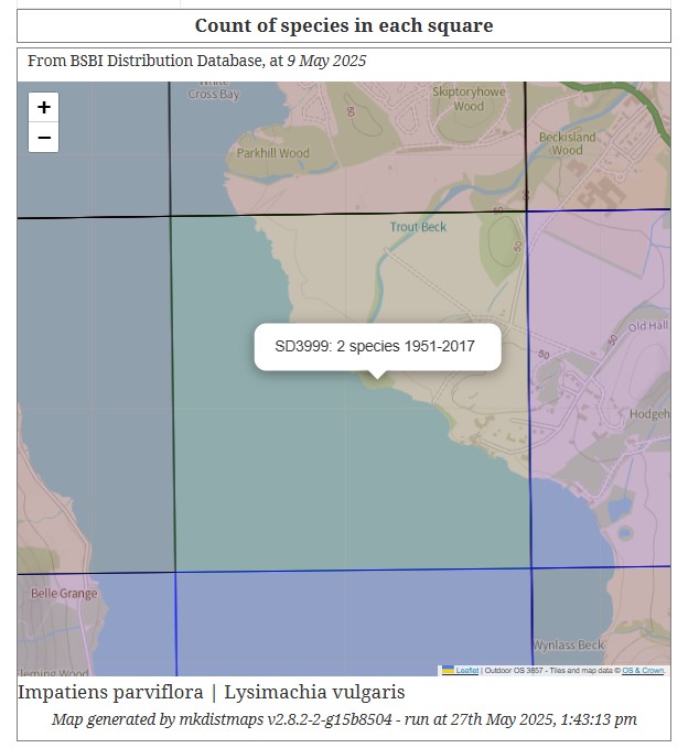 Until yesterday (2nd August 2025 and according to the CFG website – https://www.cumbriabotany.co.uk/ ), only two plant species, Impatiens parviflora and Lysimachia vulgaris, had ever been recorded in SD3999.