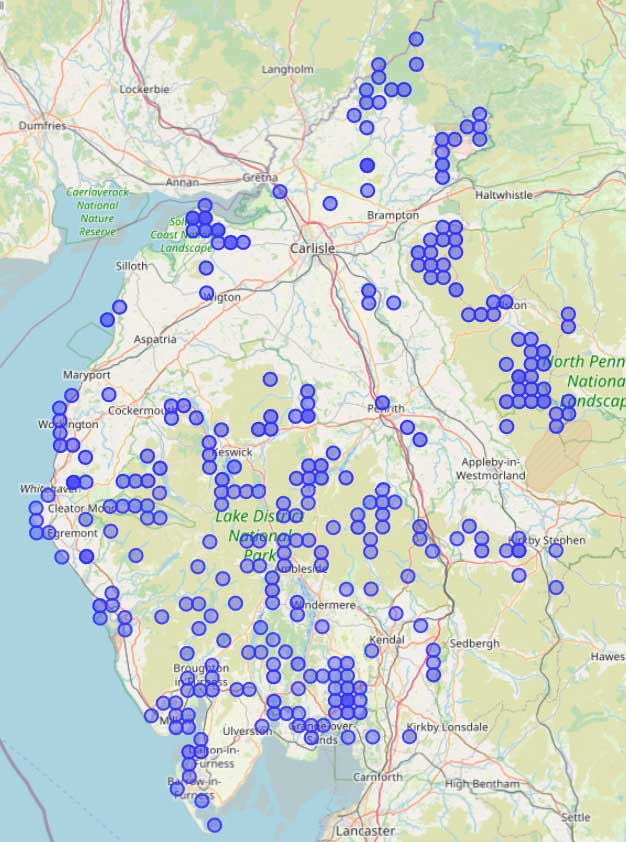 The distribution map for Cumbria is shown below (from iRecord Aug 2025).